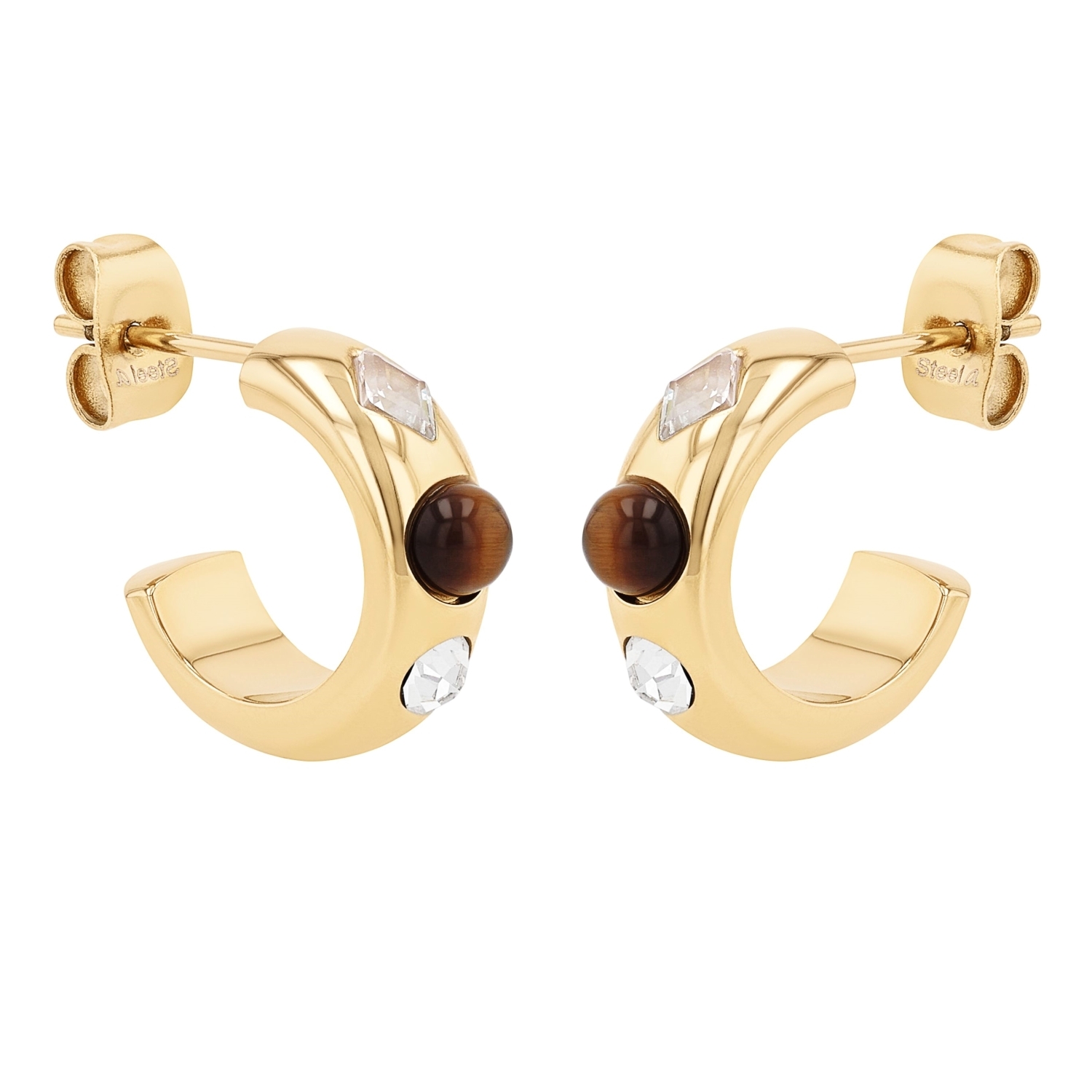 NOELANI Creolen für Damen, Edelstahl, Tigerauge, Zirkonia synth.
