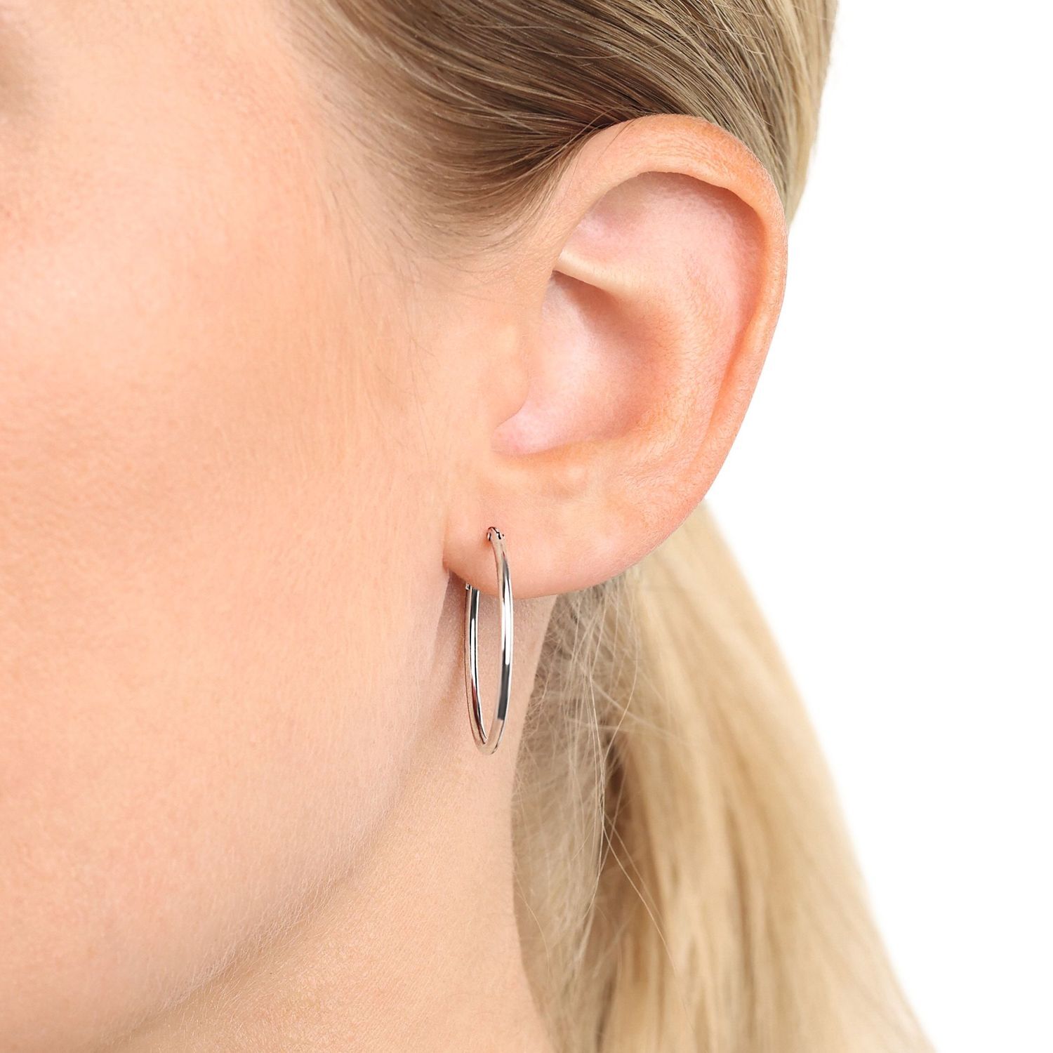 Schlicht und schick: So lautet das Motto für diese Creolen aus glänzendem 925 Sterling Silber Dieser Ohrschmuck ist perfekt für den Alltag oder auch für ein besonderes Event. Das hochglänzende Edelmetall überzeugt auf ganz besondere Art und Weise. Bitte beachten Sie: Bei diesen Ohrringen handelt es sich um Rundrohrcreolen, die in der Verarbeitung hohl hergestellt wurden und somit sehr leicht sind. Dies sorgt für einen besonders hohen Tragekomfort.