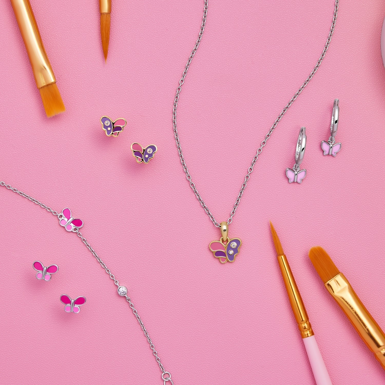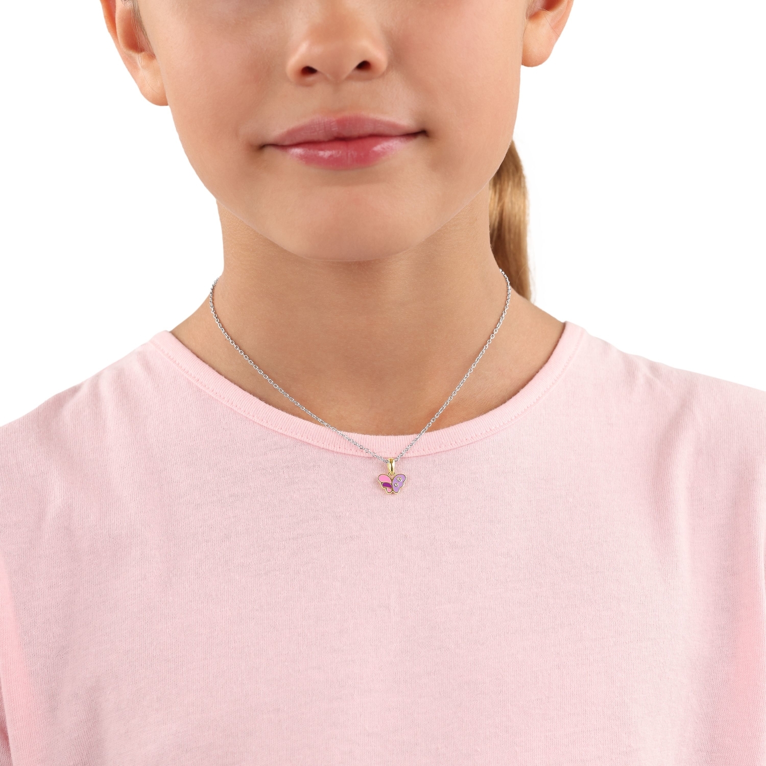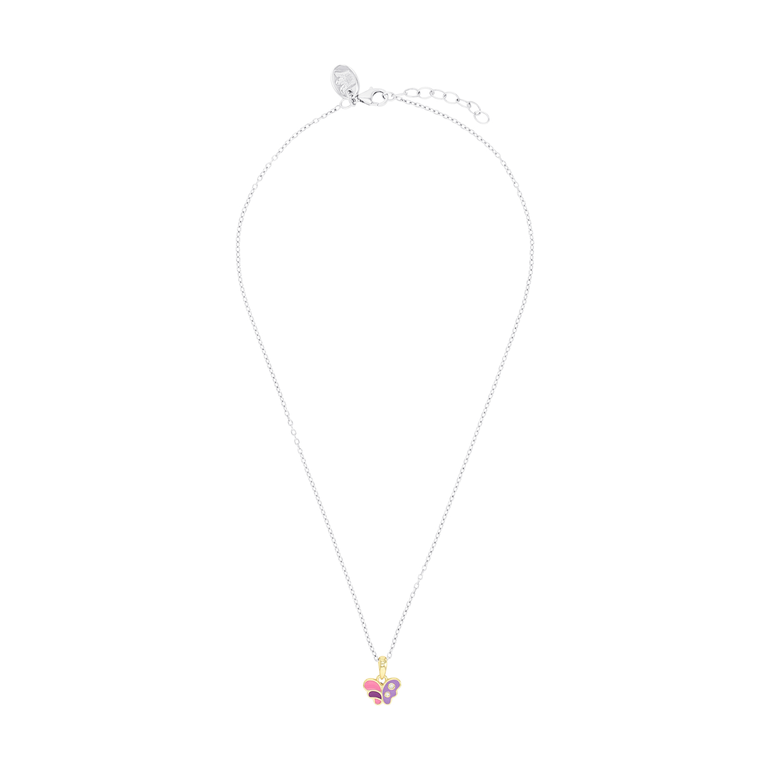 - Der Schmetterling-Anhänger der Mädchenkette ist mit zwei strahlenden synth. Zirkonia verziert